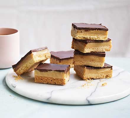 For the topping, soften 200g plain or milk chocolate slowly in a bowl over a pan of scorching water. Pour over the chilly caramel and go away to set. Minimize into squares or bars with a scorching knife.